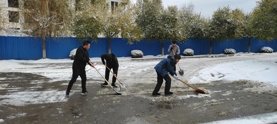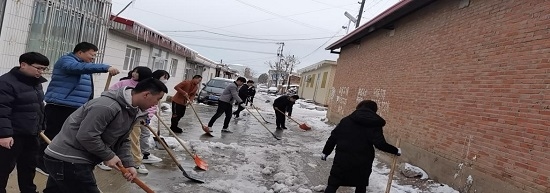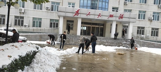 一上班,全体干部职工不畏严寒,齐心协力、配合默契,大家铲的铲、推的推、扫的扫,热火朝天。经过一个小时的奋战,终于将办公大楼前后积雪全部铲除。