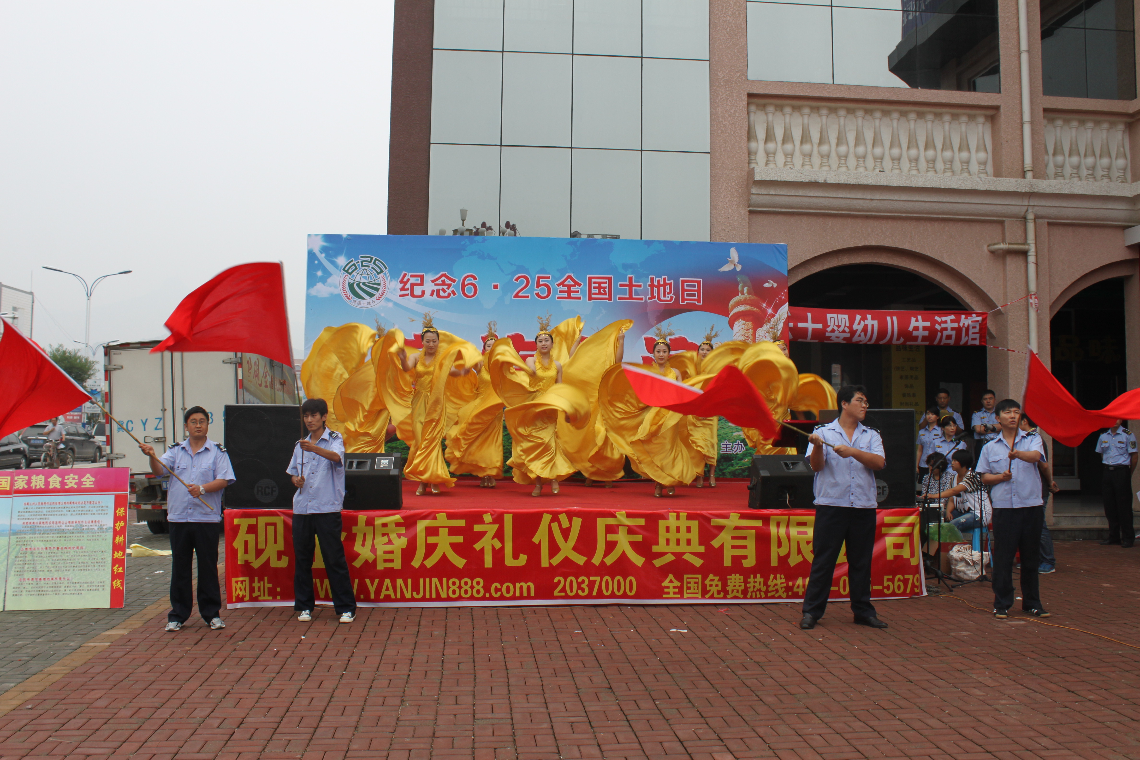 6月25日上午,昌黎县国土局在县城民生广场围绕 "建设高标准基本农田保障国家粮食安全" 的主题,开展了 "6.25全国土地日" 宣传汇演。县委常委、副县长李耀滨观看了演出并致辞。工作人员用自编自演的歌曲、舞蹈、三句半等文艺节目形式,向广大群众宣传了坚守18亿亩耕地红线的重大科学决策和意义,引导群众和社会各界要珍惜利用好每一寸土地,切实保护好耕地,实现土地资源可持续发展,保障国家粮食安全。文艺节目演出过程中还设立了土地管理小知识有奖问答环节,极大地调动了群众参与的积极性。活动现场设立咨询台、摆放宣传展牌9块、发放宣传材料3000余份,解答群众咨询34人次。宣传活动的开展,使广大群众进一步了解了国土知识和法律法规内容,提高了国土知识的宣传深度。