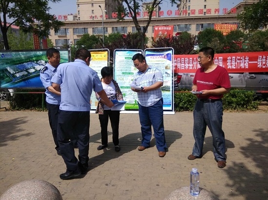 为充分调动全民参与生态环境建设的积极性,推动群众知行合一,在全社会形成崇尚生态文明的社会氛围,让美丽中国建设更加深入人心,让绿水青山就是金山银山的理念结出丰硕成果,6月5日上午,昌黎县分局携手昌黎县公安局环境安全保卫大队丶河北安丰钢铁有限公司、秦皇岛宏兴钢铁有限公司、秦皇岛碧水源环境科技有限公司、秦皇岛鹏远淀粉有限公司丶昌黎冀东水泥有限公司等重点企业在昌黎东山公园附近开展"美丽中国,我是行动者"主题宣传活动。此次宣传制作了大红横幅、发放《农村环保知识手册》《中华人民共和国环境保护法》《秦皇岛市公安局环境保护手册》"中央第一环境保护督察组对河北省开展'回头看'工作"明白纸等资料,采用环保志愿者现场释疑 "排污的注意事项" 等多方式向群众宣传环境保护知识,解答群众提出的环境保护问题。重点企业从清洁生产、节能降耗、企业文化等方面,宣传各自企业环境教育及环境规范化管理工作开展情况,树立了企业绿色发展理念。