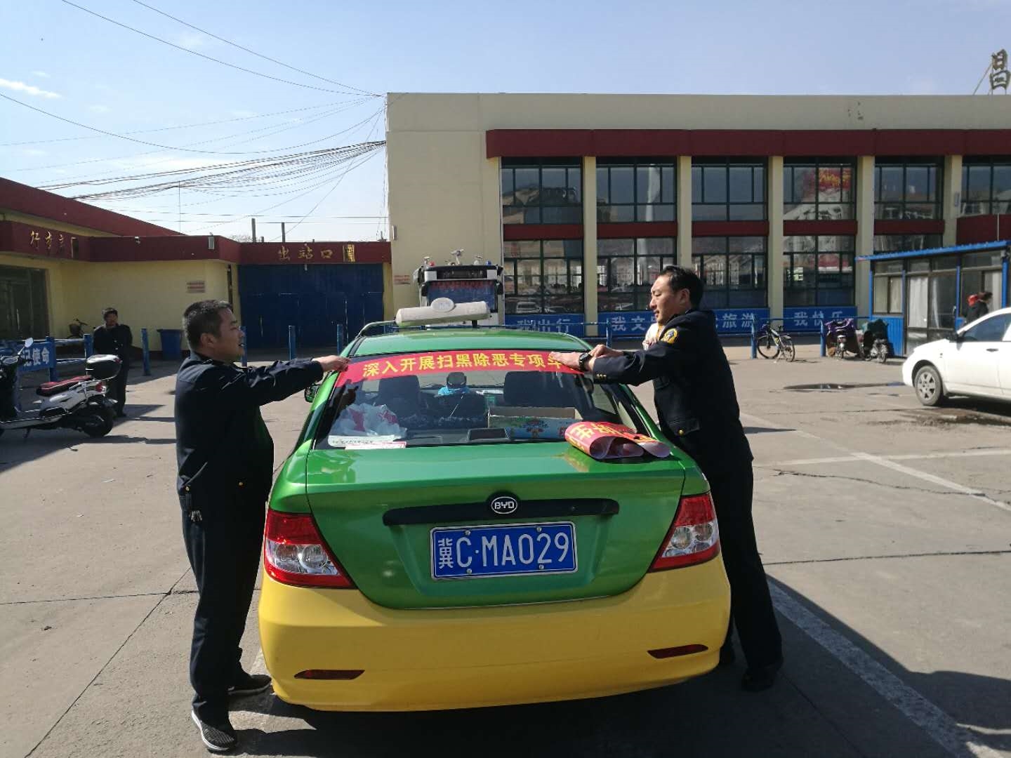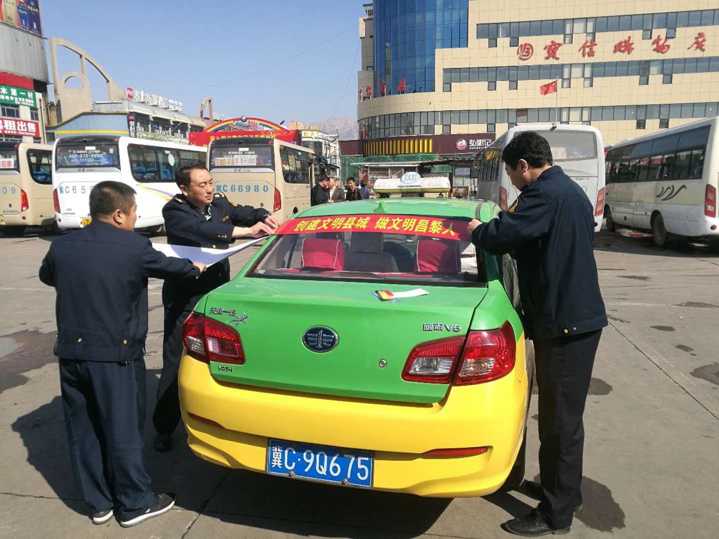 为推进文明城市创建工作,昌黎县交通运输局继续加大创建力度,持续突出抓好创城公益广告宣传、交通路域环境整治等重点创城项目,全力打造满意交通。出动执法车4台,人员20余人在我县碣阳大街沿线、火车站广场、碣石山市场、广缘超市、县医院等重点区域开展打非治违、清理客运、出租车辆占道运营行动,同时为创城标语老旧,破损的出租车粘贴创城标语200余条,营造浓厚的 "创城" 宣传氛围。