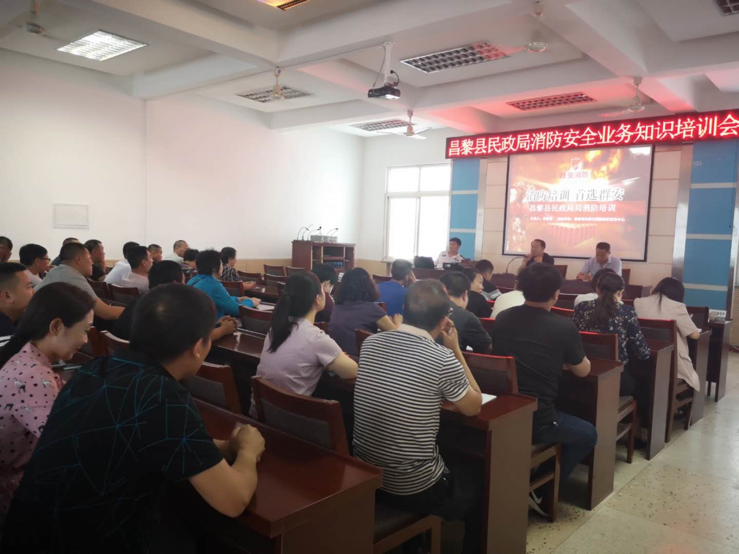 为进一步增强全体职工的消防安全意识,掌握必要的消防安全知识,熟悉各种消防器材的使用方法和必要的逃生技能,防止安全事故的发生,确保人员生命及财产安全。5月31日昌黎县民政局邀请市消防培训教官通过集中培训形式组织开展消防安全业务知识培训会,民政局机关全体、下属单位及各民办养老机构负责人参加了培训。
