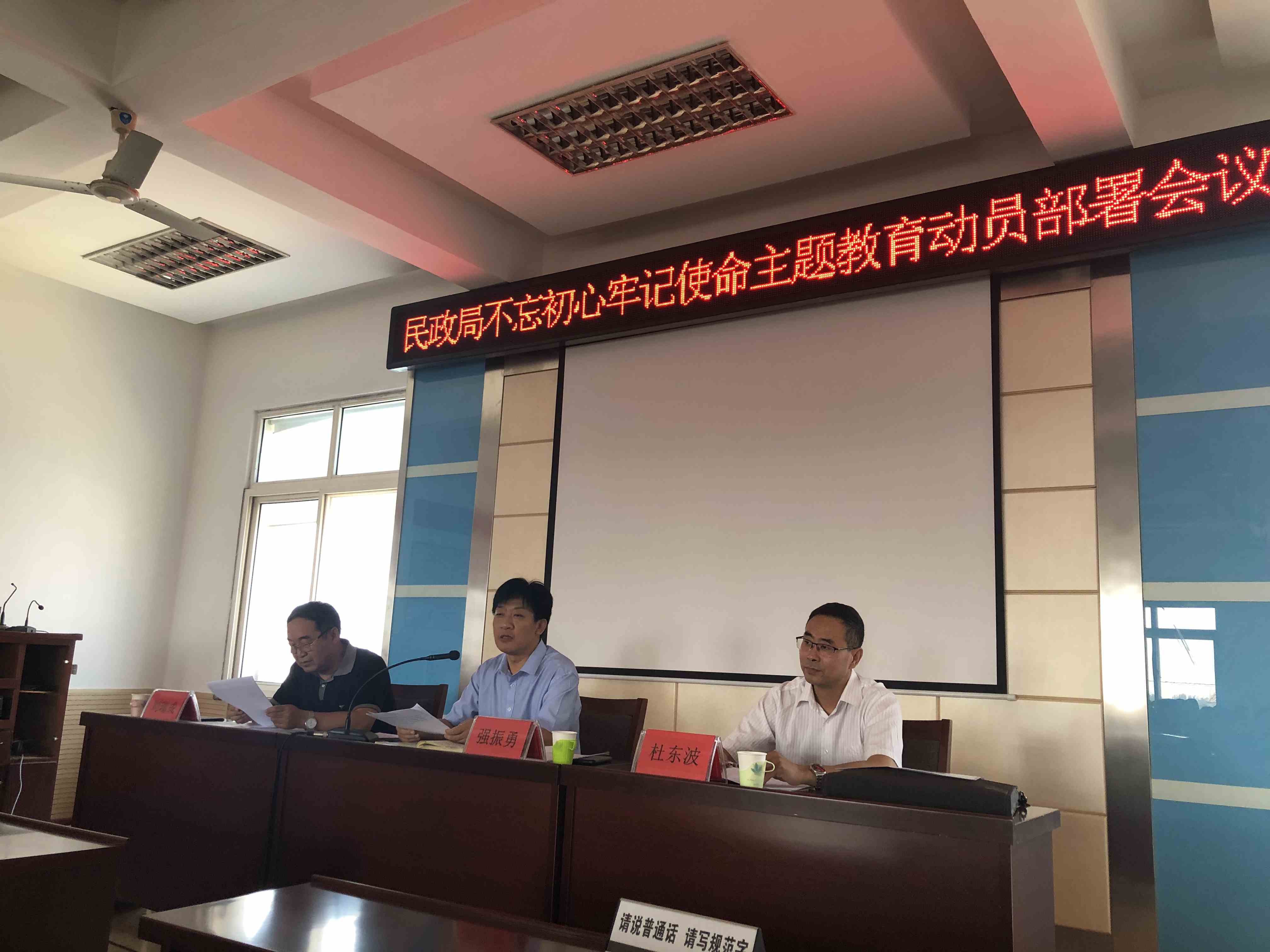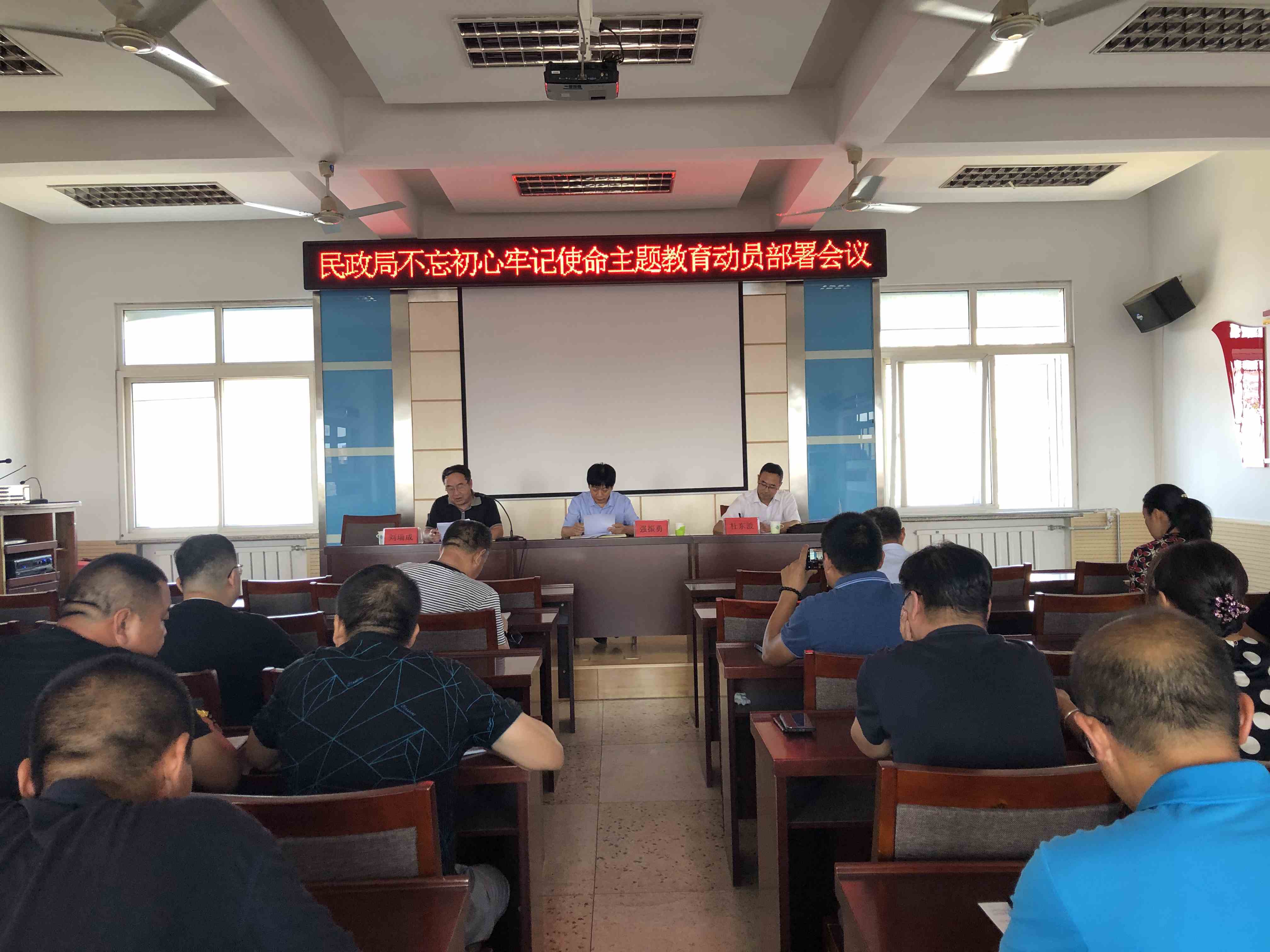 2019年9月12日,按照上级安排部署,民政局在机关四楼会议室组织局班子成员、机关党委下辖各党支部书记、社会组织党支部书记、机关全体党员干部,召开 "不忘初心、牢记使命" 主题教育动员部署大会。