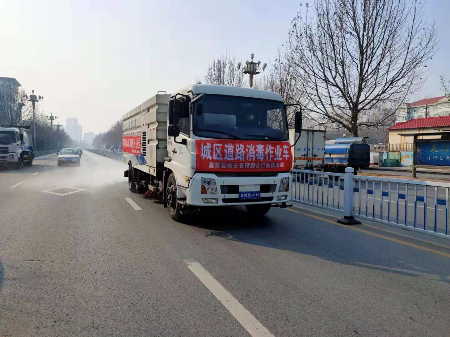 当前,新型冠状病毒感染的肺炎疫情防控工作正处于关键时期,为切实保障市民身体健康和生命安全,防止疫情传播,昌黎县城市管理综合行政执法局在做好垃圾点、垃圾桶、各场站的消杀工作的基础上,采取人工与机械化作业相结合的方式对城区主次干道、车站及广场喷洒消毒液进行消杀。