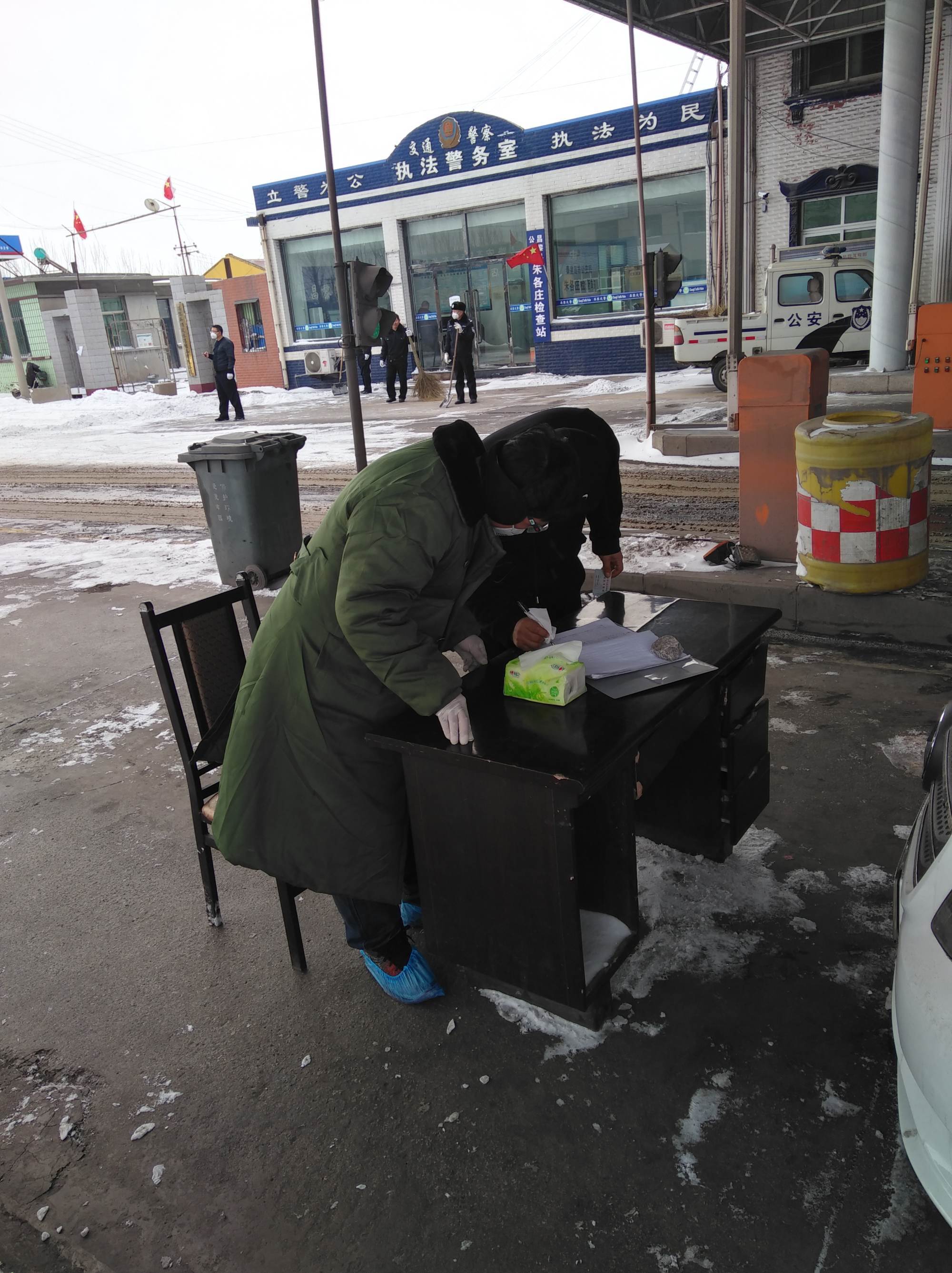 在各公路检查点,他们不计得失、不讲条件,每天裹着厚厚的军大衣,冒着严寒坚守在疫情防控一线,不分昼夜24小时执勤,随时登记车辆,检查人员,不放过每一个疫情传播隐患,为全县人民把好通往外界的第一道门户。