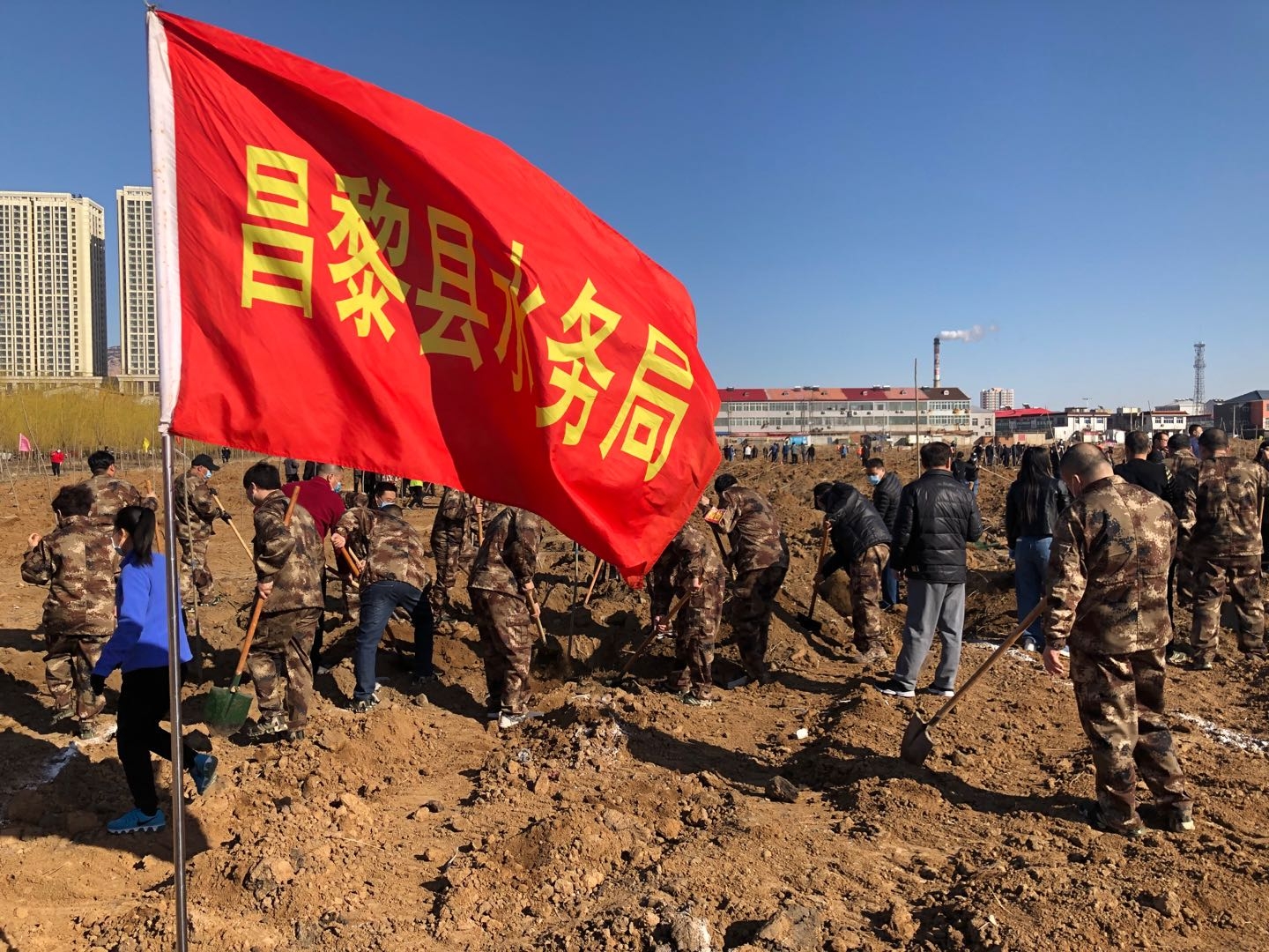 活动现场,人头攒动,一派热火朝天的景象,局领导与党员干部率先垂范,个个干劲儿十足,大家相互协作、分工明确、有条不紊、积极投入,搬运树苗、挥锹培土、扶树填土,认真完成每一道工序,经过一个多小时的紧张劳动,水务局干部职工共计栽下杨树120株,高质量的完成了植树任务。