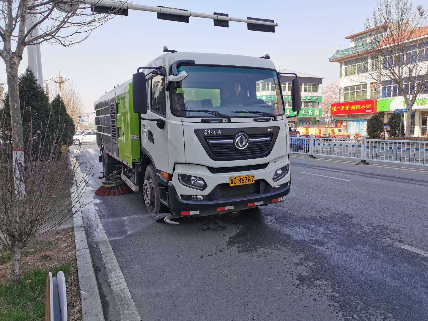 加强道路洒水及冲洗降尘作业。按照县生态办要求,实行 "24小时待命制度" 洒水降尘。动用湿扫车、洒水车,以宾水大街、五峰山路、韩愈大街、碣阳大街、学院北路、民生北路为重点,分成两个班次,对城区主次干道进行洒水降尘及机械化道路清扫。