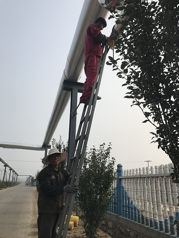 在通往恒达粉丝厂的道路施工现场,施工人员正在抓紧对供热管道进行焊接、保温。现场施工人员说: "我们冒着36度高温天气加紧施工,施工以来都没有休息,争取保障恒达、三力、联盛等9家企业在8月初全部实现蒸汽供热" 。