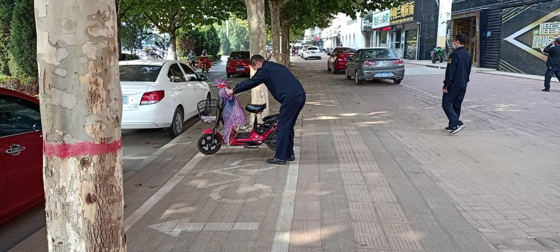 在发放倡议书的基础上,县城管执法局执法人员联合热心群众先行对违停非机动车进行了规范引导,帮助居民将将非机动车按序停放。为起到提醒作用,执法人员在每辆违停非机动车辆粘贴了温馨提示卡,提示其自觉将非机动车停放在指定区域内。