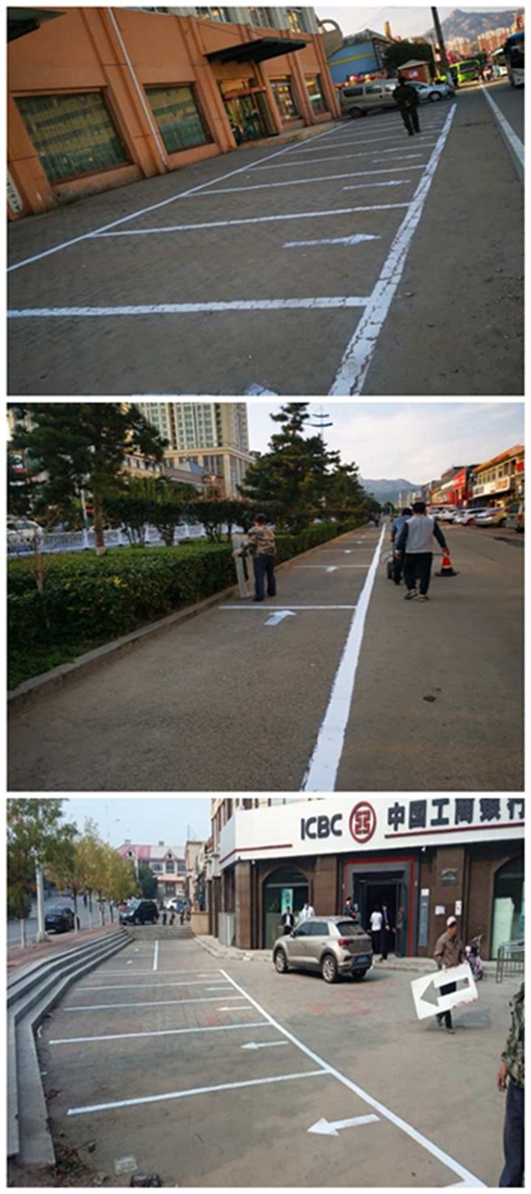 在施划车位现场,交警大队工作人员首先对停车场地进行测量规划,然后再统一进行画线。清晰的白线跃然于道上,不仅对空地利用进行了详细的规划,同时也让避免了停车乱、易发生事故等问题。标志标线采用的是速干冷漆,施工结束后就可以立即投入使用,最大限度的减少了施划工作对群众出行的影响。
