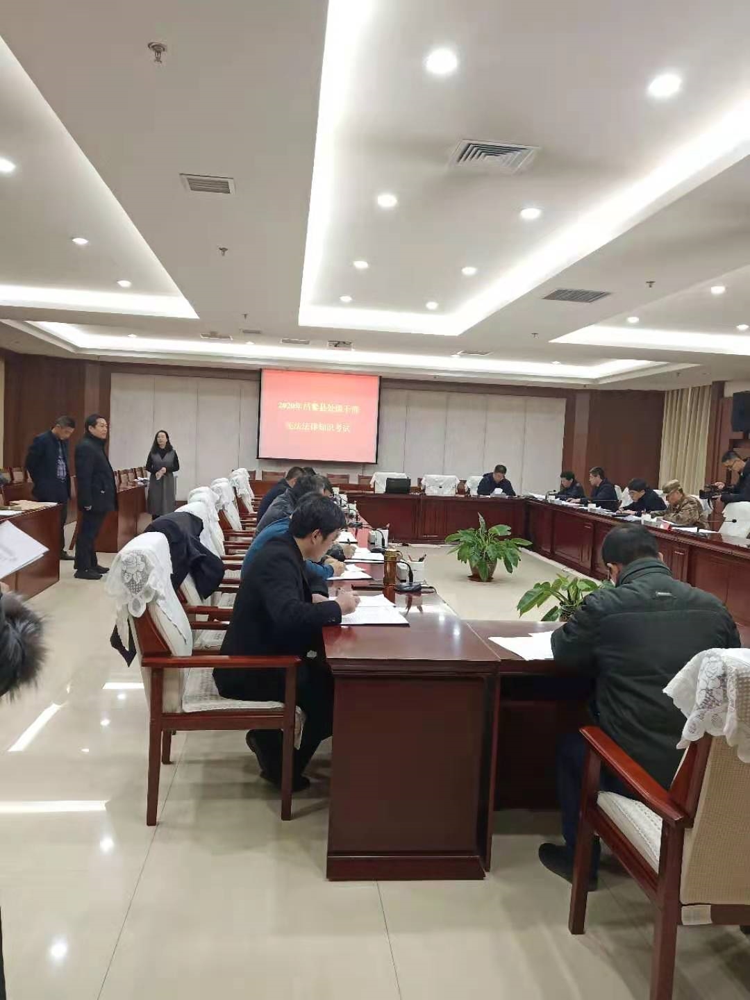 为深入学习贯彻党的十九大和十九届二中、三中、四中、五中全会精神,深入学习宣传习近平法治思想,弘扬宪法精神 ,维护宪法权威。12月4日上午在第七个国家宪法日暨 "宪法宣传周" 到来之时,我局联合县委组织部在市民中心第三会议室集中组织处级在职干部参加宪法法律知识考试,与此同时,全县各单位、各部门也自行组织了宪法法律知识考试。