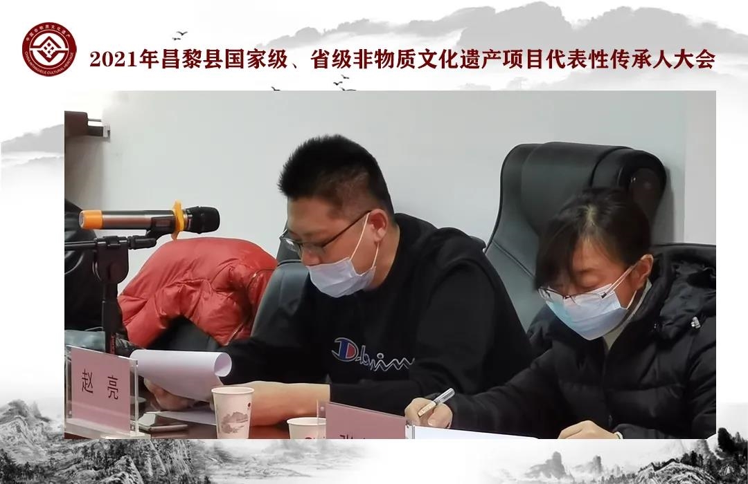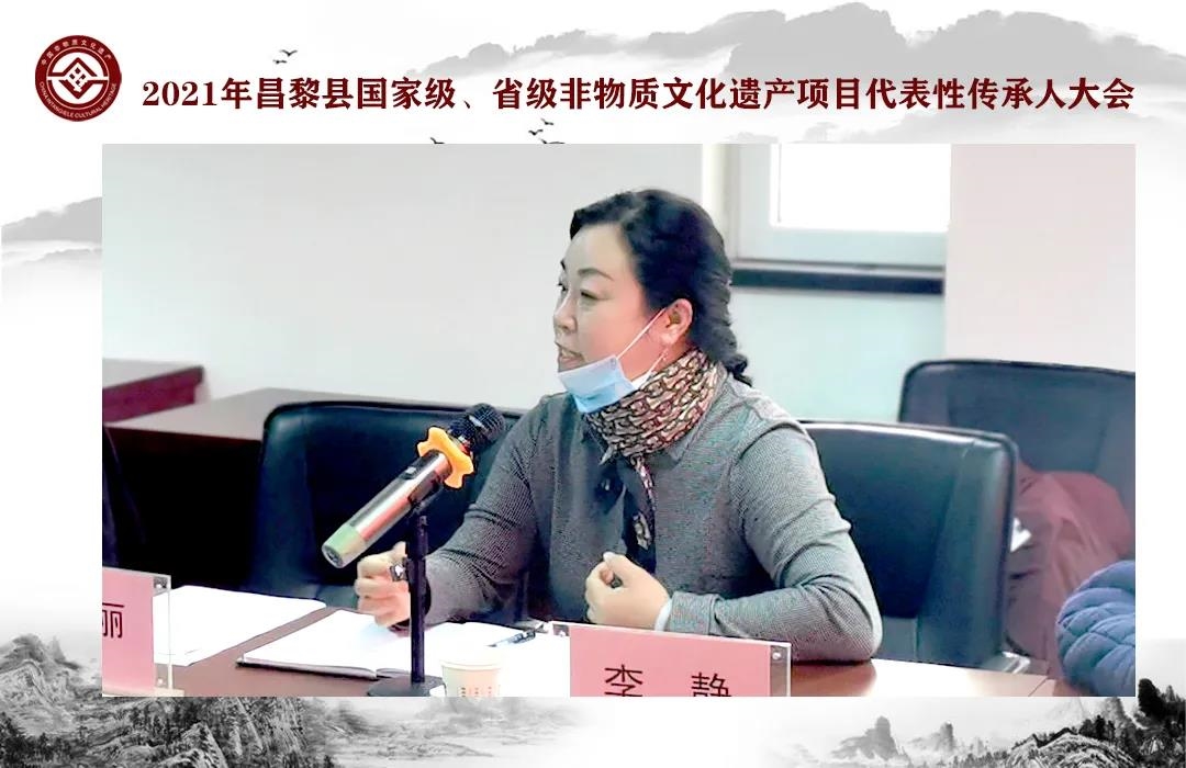 为传承弘扬中华优秀传统文化,有效的保护和传承非物质文化遗产,规范国家级、省级非遗项目代表性传承人传承活动,提高传承实践能力,2021年1月6日,昌黎县文化馆、昌黎县非遗保护中心在县图书馆三楼多功能厅组织召开了国家级、省级非物质文化遗产项目代表性传承人大会,昌黎县旅游文广局副局长孙江文、公共服务股股长杨静琳,县文化馆、非遗保护中心主要负责同志以及三位国家级传承人和十五位省级传承人参加了此次会议。