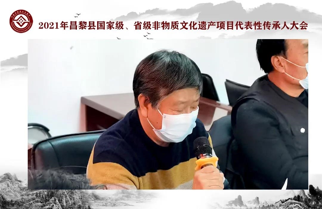 会上,与会同志共同学习了《国家级非物质文化遗产代表性传承人认定与管理办法》和《河北省省级非物质文化遗产代表性传承人的认定与管理办法》两个文件,进一步了解了代表性传承人的权利和义务。会上,3位国家级和6位省级传承人代表进行了2020年传承情况总结汇报,并就全县非遗传承工作开展的经验和思路进行了交流发言。