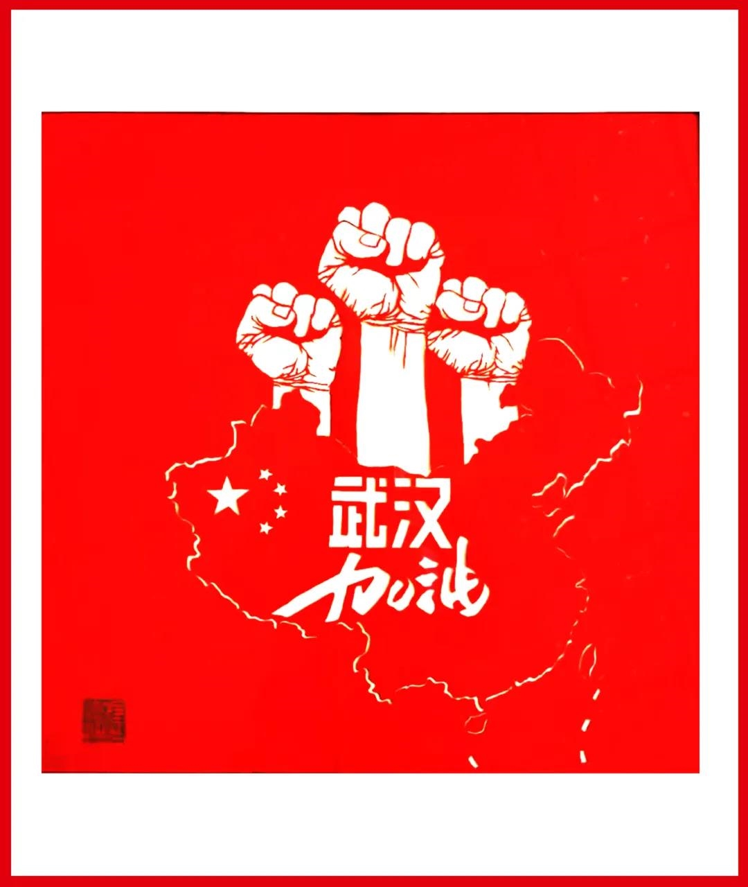 该作品用握紧的拳头表现我国人民抗击疫情的决心,表现了我国人民团结一致,众志成城战胜疫情的精神。