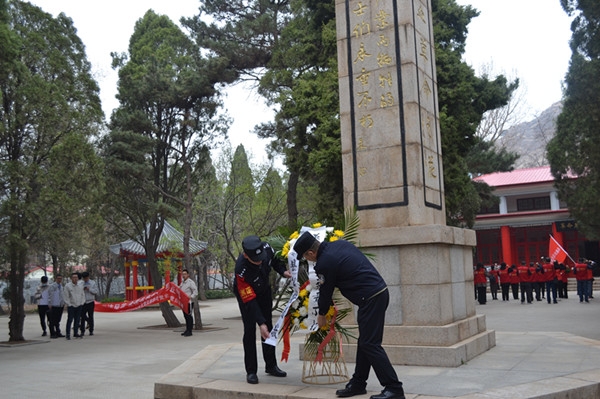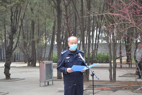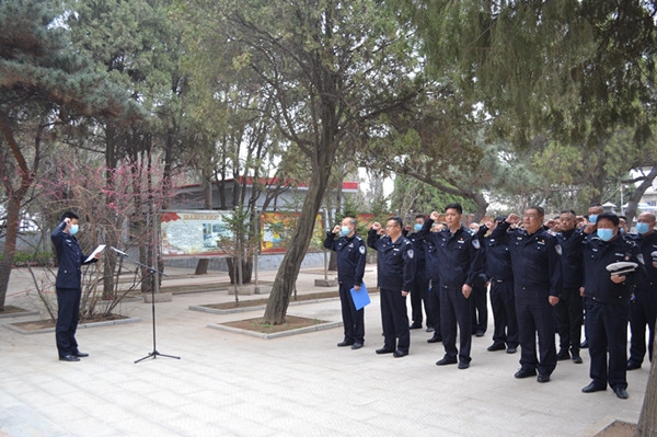 春日的烈士陵园,花红叶绿,庄严肃穆。在烈士纪念碑前,全体民警整齐列队而立,两名巡特警人员向烈士纪念碑敬献花篮,全体人员脱帽向烈士默哀三分钟。 "我志愿加入中国共产党,拥护党的纲领……" 全体民警庄严宣誓,整齐洪亮的誓言响彻寂静的园陵。