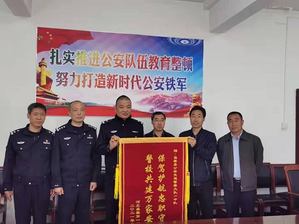 -- 昌黎一中向交警大队一中队赠送锦旗