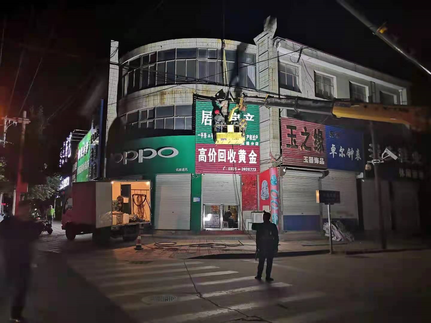 为确保专项整治工作顺利开展,县城管执法局执法人员对不规范广告牌匾进行摸底后,采取边向商户下达整改通知书,边讲解相关政策的方式,使专项整治得到了广大商户的支持。县城管执法局首先开始了对燕山路沿线的整治行动。为避免交通拥堵,减少商户营业损失,执法人员在做好安全生产的基础上,采取夜间施工的方式,每天晚8点至次日凌晨1点对不规范广告牌匾进行拆除。目前,已拆除不规范广告牌匾35块。