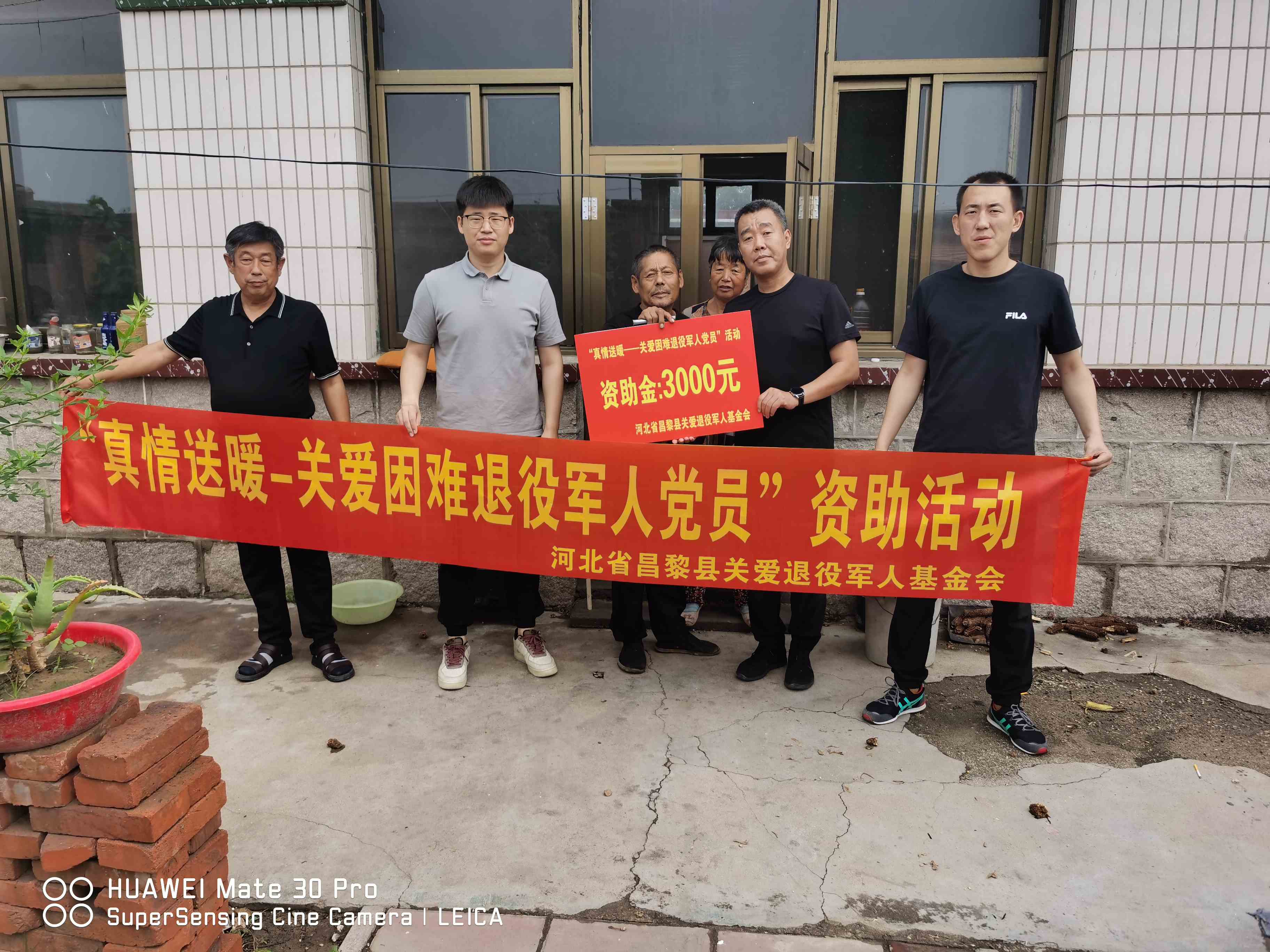 2019年昌黎县关爱退役军人基金会成立以来,认证践行 "尊重关爱退役军人,热心服务退役军人、积极帮助退役军人" 的办会宗旨,积极开展资助活动,为庆祝中国共产党建党100周年,深入贯彻落实河北省委党史学习教育 "我为群众办实事" 实践活动要求,我县关爱退役军人基金会于7.1前开展 "真情送暖--关爱困难退役军人党员" 活动。