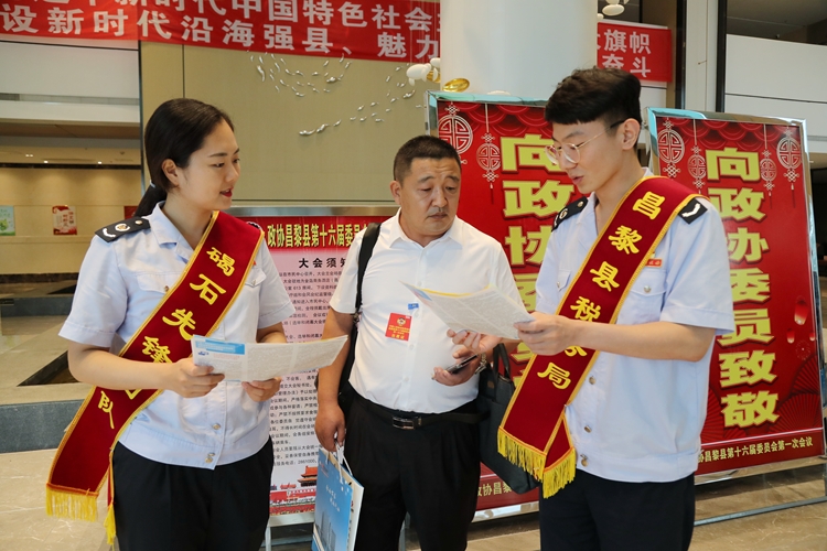 新服务。 "‘两会’代表委员是全县各行各业的杰出代表,我们要巧借‘两会’东风,把为‘两会’量身定制的税费政策礼包送到每位代表、委员手中,让昌黎税务的贴心服务走入每位代表委员的心中,让我们的‘便民办税春风’吹到全县各行各业。" 昌黎县人大代表、县税务局党委书记、局长武玉才在 "两会" 召开前反复强调。确认 "两会" 召开时间后,县税务局党委科学谋划、主动作为,在前期开展好税企座谈会、入企走访调研、电话咨询、问卷调查等准备工作的基础上,多次召开专题会议,研究覆盖面全、针对性强、适用性广的 "两会" 专属税费政策宣传内容,其中涵盖财行税合并申报、六项非税划转、社保费常见问题及小微企业减税降费政策等多项内容。同时,积极联系 "两会" 组委会,协调将宣传手册及带有 "云外呼" 咨询电话、执法监督电话的宣传单提前放入 "两会" 会议资料包,方便代表委员在会议间隙了解最新税费政策,并建立起 "常联常通" 的意见建议收集反馈机制。