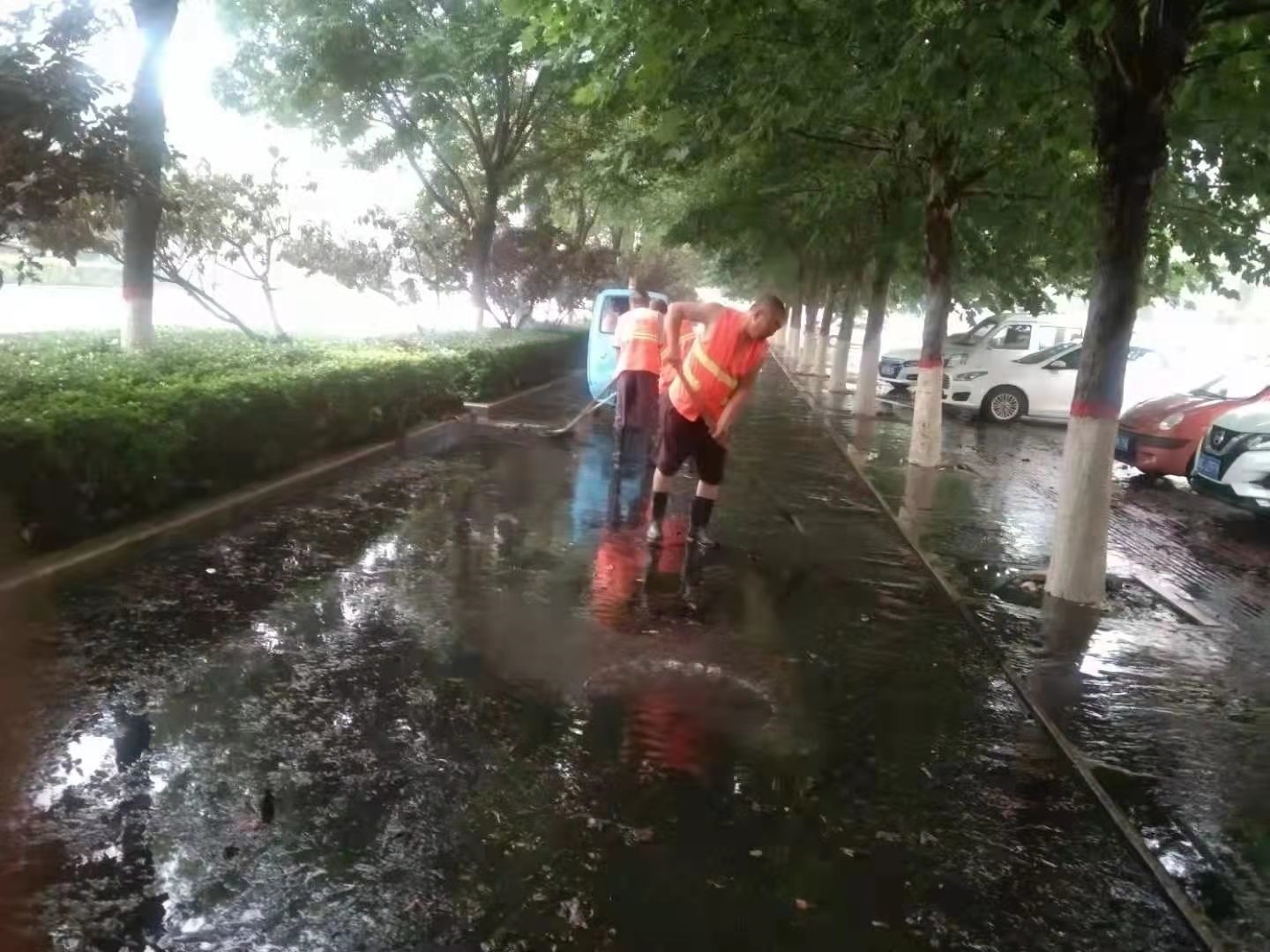 为保障工作取得实效,尽早恢复路面整洁。昌黎县城管执法局积极部署,组织环卫工作人员第一时间投入到清淤工作中,先用铁锹铲除淤泥,再用清扫工具清扫路面。同时,利用环卫车辆对路面进行机械化联合作业,出动洒水车和湿扫车对路面进行反复冲洗,清扫车随后进行洗扫,使路面恢复干净整洁。此次清淤行动共出动环卫人员300余人,环卫车辆18台,清理淤沙80余方。