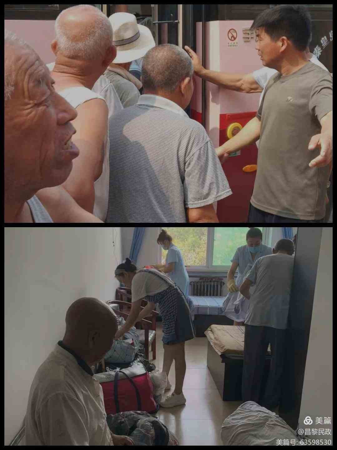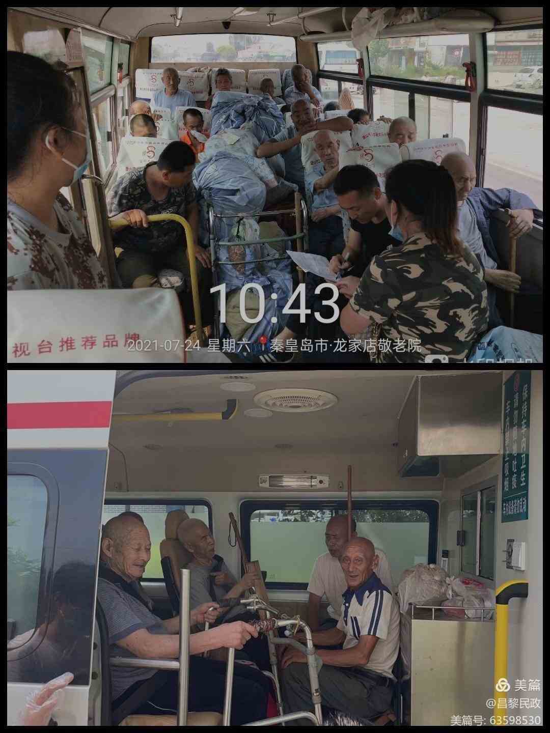 点名、查看随身物品,保证不落下一人,不丢下一件随身物品,老人们带着期盼,前往 "新家" 。