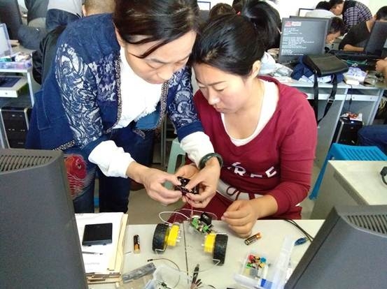 为普及发展全县中小学创客教育,在县教育局电教站精心组织和安排下,于9月份在进校微机室成功举办了2017年创客教育培训活动。本次培训分两期进行,第一期由电教站赵春雷老师介绍了思快奇软件,突出创意编程;第二期由电教站于永顺老师以Arduino平台为例讲解了开源硬件编程与搭建。全县共有60位中小学教师参加此次培训。老师们在培训中认真听讲,积极动手,基本完成了编程和搭建任务。最后李友副站长做出总结和提出要求,希望各位老师培训结束后要好好研究设备,勤于思考敢于动手,在以后的活动中拿出好的作品参与评比,把我县的创客教育提升一个新台阶。(信息员:侯增刚)