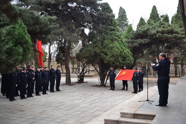 在烈士陵园,全体民警集体默哀,凭吊革命先烈英魂,并由民警代表怀着无比崇敬的心情,向革命先烈敬献花篮。随后,全体民警举起右手,庄严地重温了入警誓词。