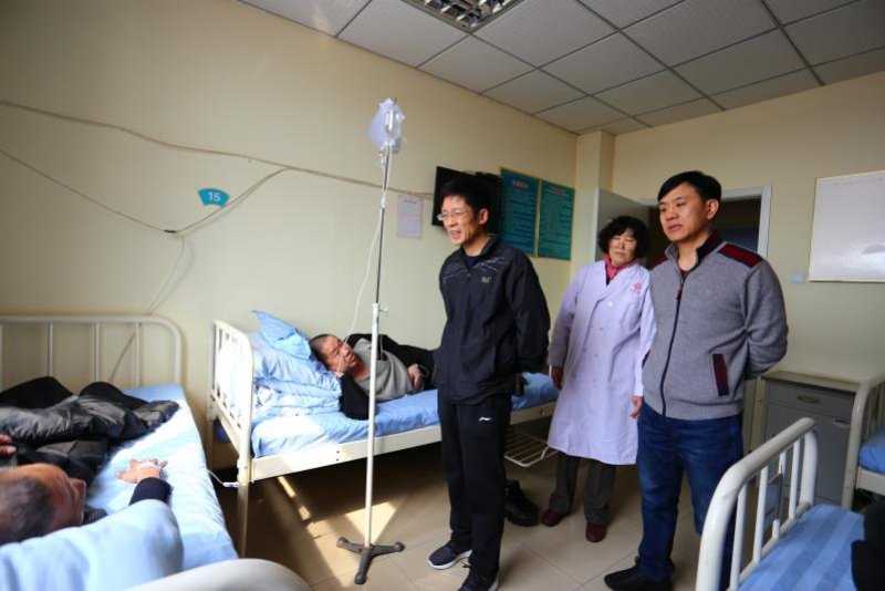 民政局局长和主管副局长到县医疗一站式定点医院查看医疗一站式服务工作运行情况并对在院低保五保对象进行慰问.