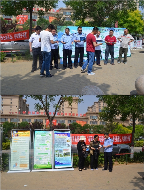 宣传活动现场,民警通过展板、悬挂环保标语宣传横幅、发放各类环保知识宣传资料等方式,向广大群众宣传环保方针政策、法律法规、宣传环境保护知识等。活动期间,共向群众发放《秦皇岛市公安局环境保护手册》、《农村环保知识手册》、 "中央第一环境保护督察组对河北省开展‘回头看’工作" 明白纸等资料200余份,展出宣传展板8块,悬挂宣传横幅1条,向过往群众宣传环境保护知识,解答群众提出的环境保护问题。重点企业从清洁生产、节能降耗、企业文化等方面,加强对企业环境宣传教育及环境规范化管理等方面的宣传,促进企业绿色发展。