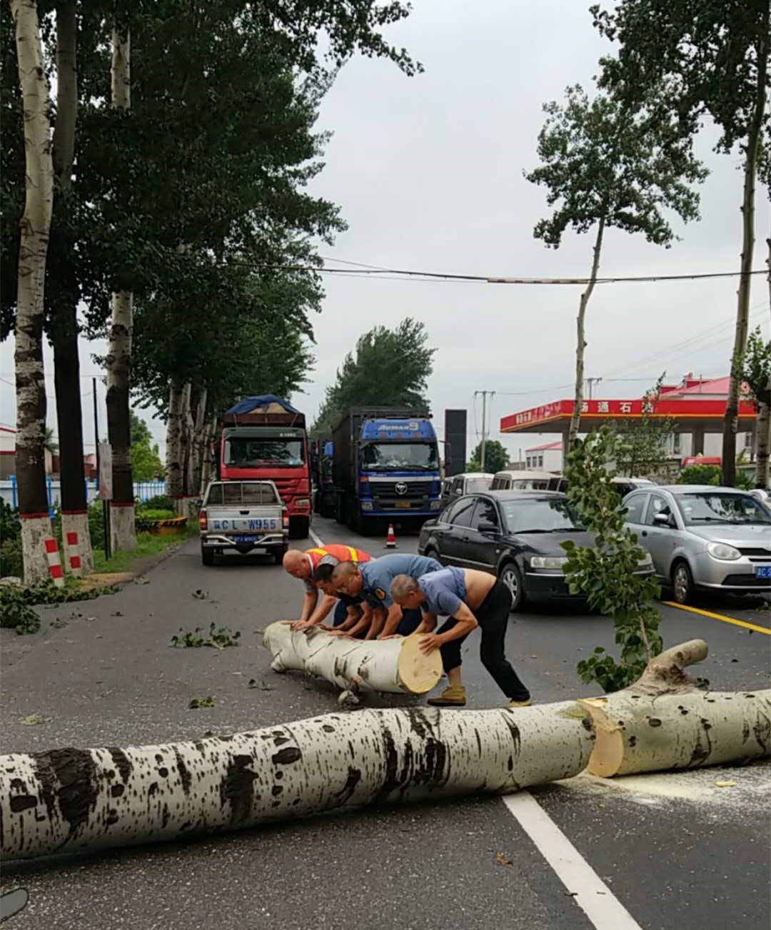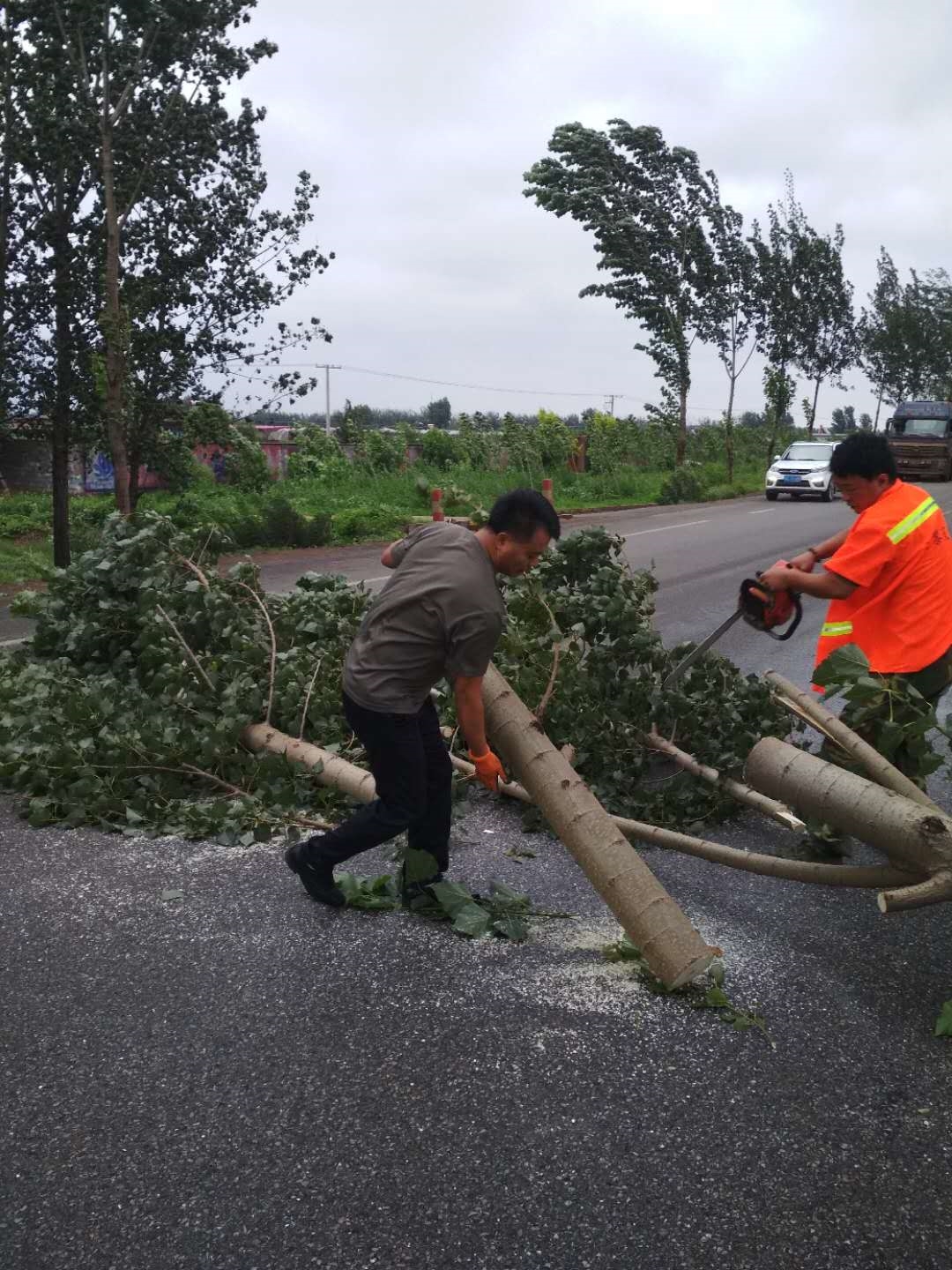 受极端恶劣天气影响,7月24日我县境内遭遇特大暴雨、狂风袭击,为及时消除安全隐患,凌晨5点,昌黎县交通运输局迅速做出反应,立即启动防汛应急抢险预案,安排人员冒雨上路巡查。中午时分,多条国省干线公路、县路出现大面积路树倒伏险情,严重影响行车安全,险情出现后,应急抢险队第一时间分赴遇险现场,紧急抢险,及时处置、排除险情。经过近8个小时的连续奋战,国道205线、青乐线、刘台庄连接线、沿海线、卢昌线、团新线等公路倒伏路树已全部处置完毕,有效地保障了公路安全畅通。