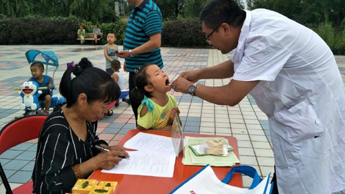 在黎昌滨城小区活动现场聘请的医学专家为社区的居民及流动人口、留守人口进行免费测量血压、听诊、健康咨询,牙科专家现场为小区的儿童进行了口腔及牙齿检查。同时发放宣传单,避孕用品等,向群众宣传了健康知识、免费基本公共卫生计生服务政策和服务项目等。