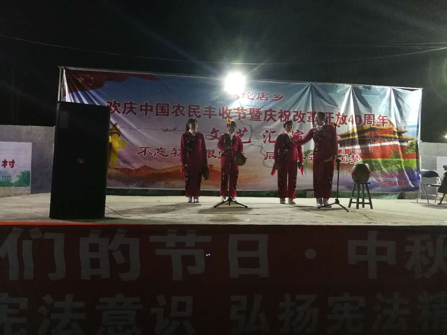 9月23日,由马坨店乡党委、马坨店乡政府主办的 "欢庆中国农民丰收节暨庆祝改革开放40周年文艺汇演" 在后孟营村村民文化活动广场精彩呈现。活动以丰收和改革开放为主题,宣传党的十九大精神,弘扬社会主义核心价值观。参与演出者均为来自各村的农民文化志愿者,锣鼓镲表演、诗歌朗诵、器乐演奏、民歌、广场舞等节目集中体现了改革开放以来农村所发生的巨大变化以及农民喜获丰收的幸福感。农民自创歌曲《昌黎,我可爱的家园》、三句半《咱们农民有话说》等节目深受群众欢迎,展现出新时代农民的新风貌,坚定了大家共创美好生活的信心。