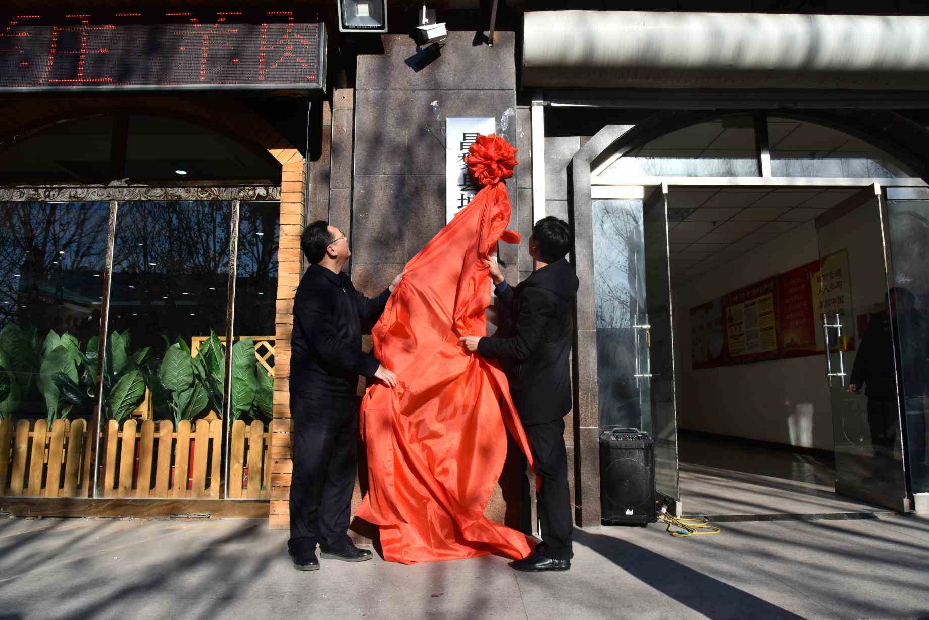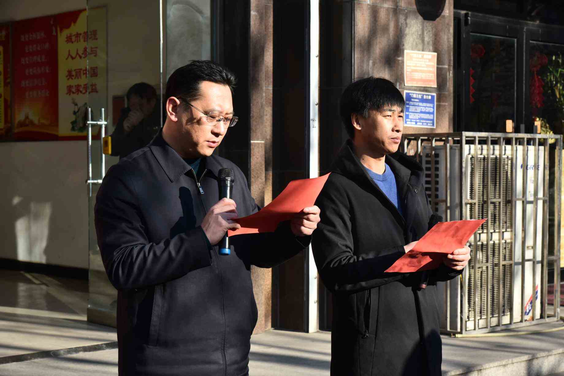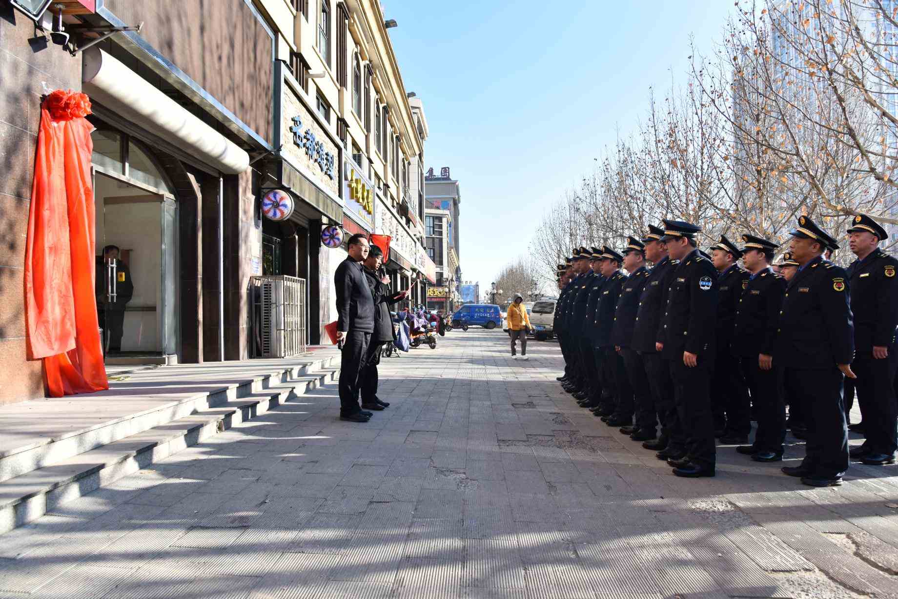 随着庞印宝书记致辞宣布 "县城市管理综合行政执法局正式挂牌成立" ,与城市管理综合行政执法局路江局长共同揭牌。