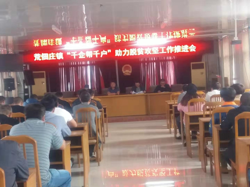 荒佃庄镇召开千企帮千户助力脱贫攻坚工作推进会,55家企业参加会议。