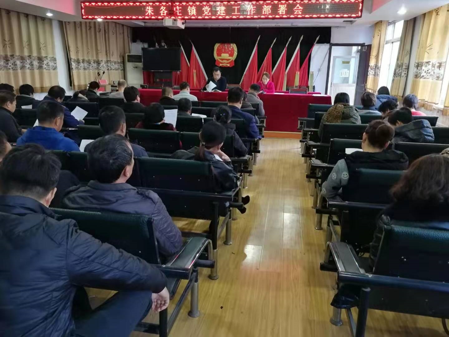 11月24日,朱各庄镇召开基层党建工作推进会。镇党政领导班子全体成员,各村党支部书记、村主任及党建指导员参加会议。