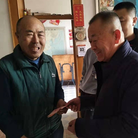 图为:八里庄村慰问老党员