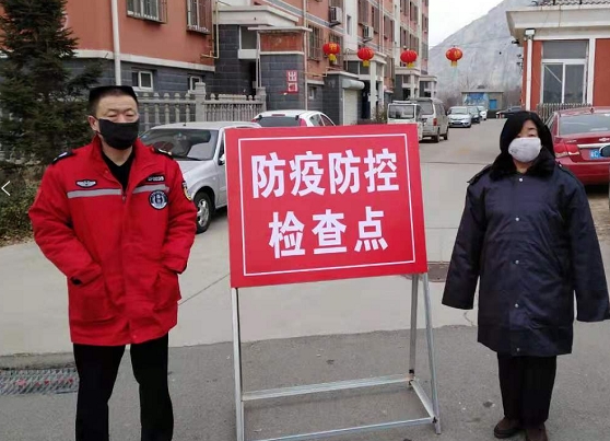 图为:小区门前防控检查点