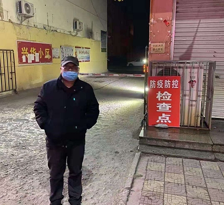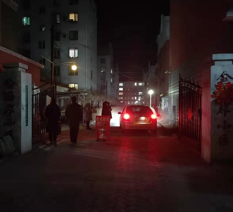 图为:夜间兴华小区防控检查点
