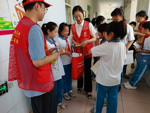 活动中,志愿者为学生们发放 "扫黄打非" 绿书签,并在学校显要位置张贴 "护苗2022" 专项行动宣传海报,循循善诱地传达绿书签的意义所在,告诉孩子要善读书、读好书、爱读书,远离有害卡通画册,拒绝盗版书籍,养成良好阅读习惯,做文明时代新人。