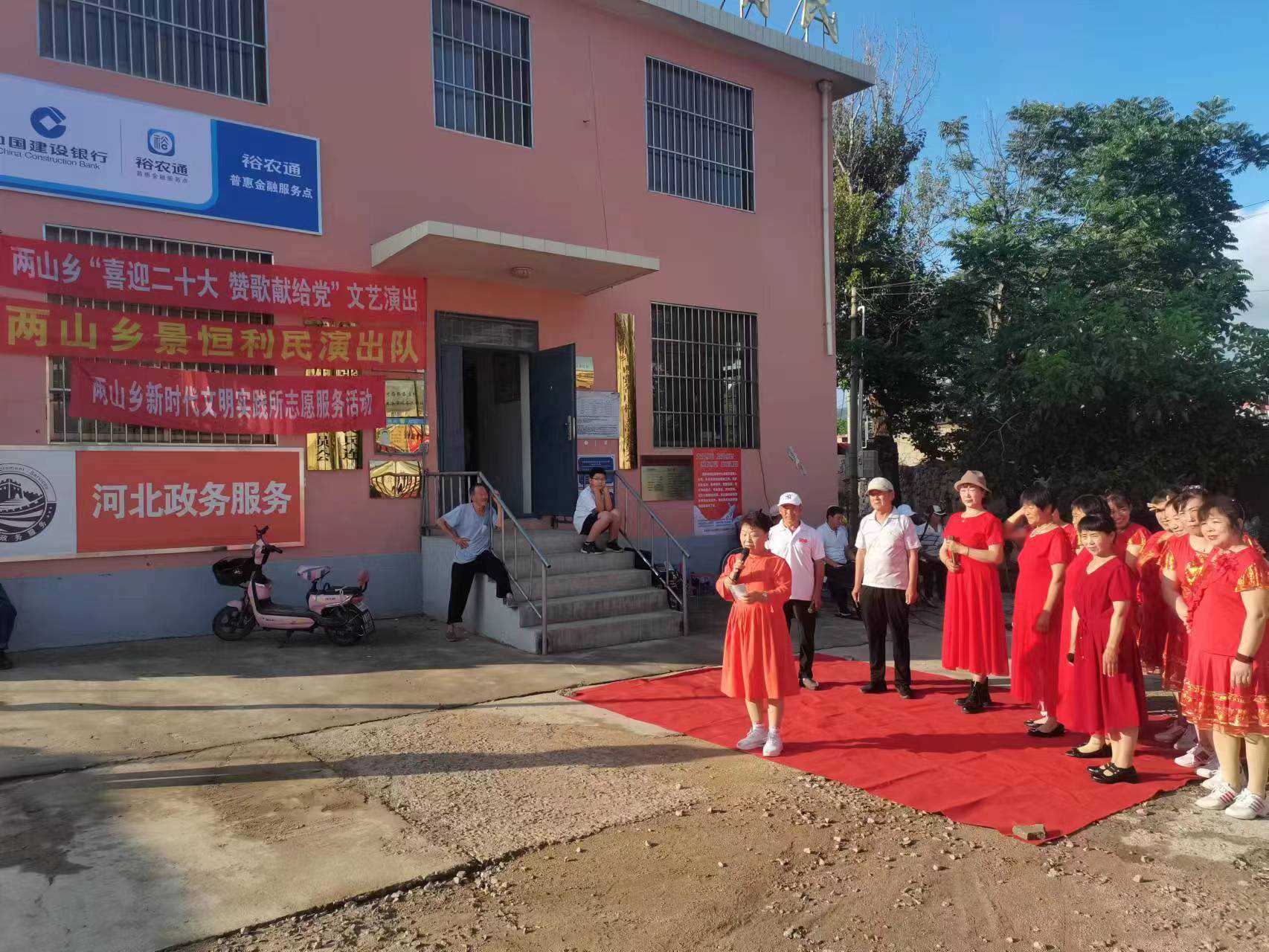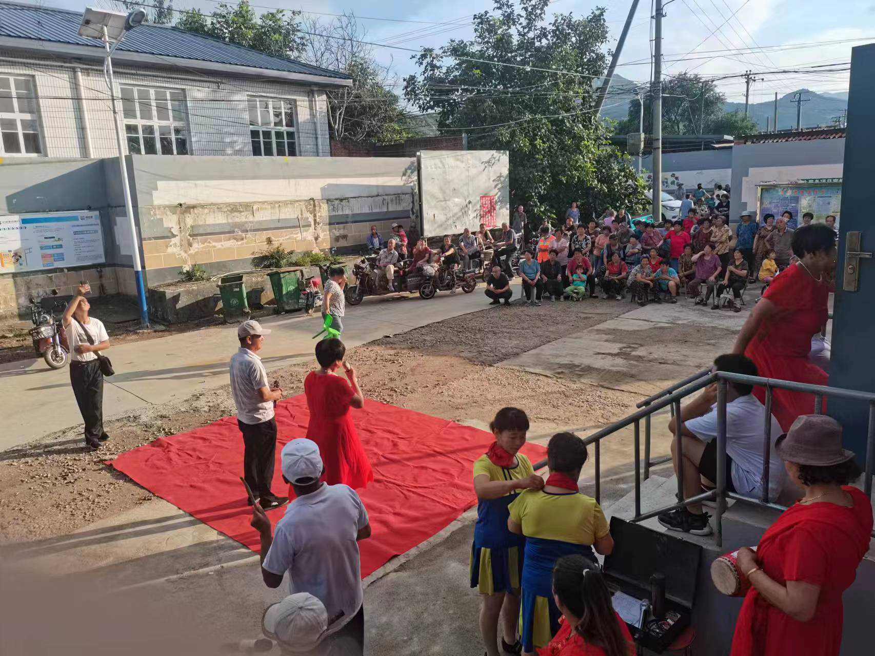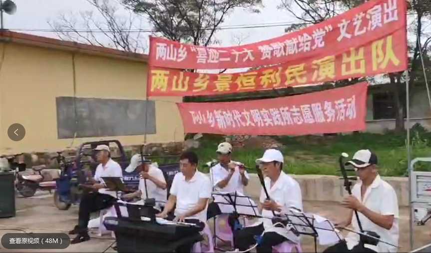 为激发两山乡广大群众的爱党爱国热情,丰富群众精神文化生活,在中国共产党成立101周年之际,两山乡文明实践所组织辖区内文艺志愿者在河西张各庄村、后营村、东坎上村进行了系列文艺演出,演出既涵盖了《大中国》《我爱你中国》《再唱山歌给党听》等歌曲,也包含表演唱《摩登老两口》《防诈斗智》、三句半《农村新面貌》等自创节目,本地特色秧歌等等......一个个节目接连引起群众的叫好,极大丰富了百姓的精神文化生活。