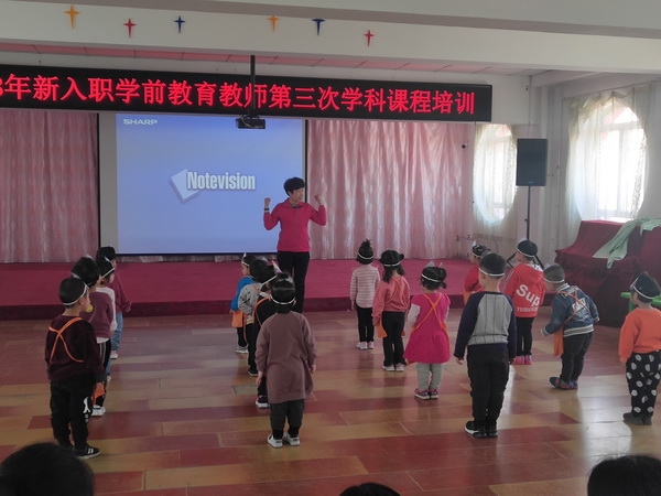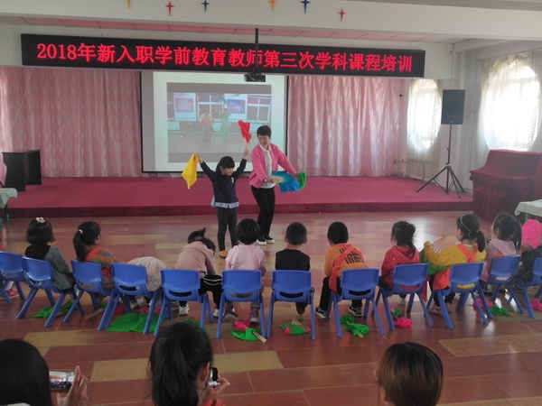 为充分发挥省级示范园的示范引领和辐射作用,按照县进校的安排,4月26日上午,在县幼儿园举办了 "2018年新入职学前教育教师第三次学科课程培训" ,共20名新教师参加此次培训。县幼儿园对此次活动非常重视,精心组织,认真准备,首先进校王翠玲主任讲话,介绍本次讲课教师和课程,其次,梁敏、梁兴伟、刘坤老师分别向新入职教师们展示了大班音乐活动--《小老奤扭秧歌》、中班语言活动--《出海》、小班健康活动《小鸟找家》,三节教学活动都渗透了 "以幼儿为主体" "面向每一个孩子" 等新《纲要》中的教育理念,选材恰当,教学手段丰富,课堂氛围好,教师的个人风采得到充分展示,达到了教学示范引领作用,赢得了阵阵掌声和喝彩。教学活动后,县幼儿园的领导、讲课老师和新入职教师围坐在一起,就三节教学活动进行了现场研讨,从活动设计、教学方法等方面进行自我反思和互动式研讨,教师们各抒己见,现场气氛活跃。通过此次活动,进一步提升了县幼儿园教师的专业水平,深感作为省级示范园内的教师,有责任有义务要做的更好,力求通过此次活动,鼓励全体教师进一步树立先进教学理念,不断提升业务水平,促进幼儿健康、快乐、自主、富有个性的发展,做好示范引领,推进发展,共同成长!(信息员:冯剑)