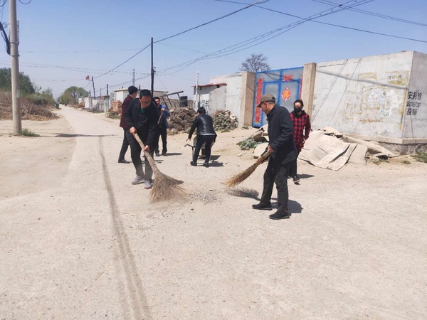 2019年5月5日上午,假后上班第一天,大滩完全小学党支部全体党员集中在一起,清理校园周边环境。