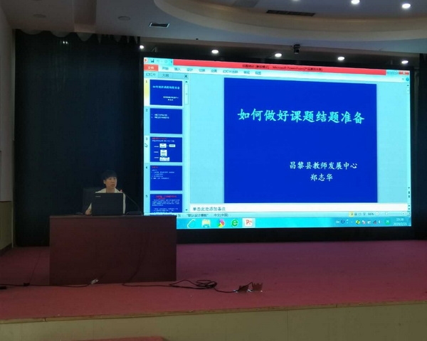 培训会由教科研部研训员杨怀宇老师主持,介绍会议议程。首先由教师发展中心副主任郑志华为大家做了题为《如何做好课题结题准备》的讲座。郑副主任详细讲解了研究报告的书写、理论成果的提炼、实践成果的分类以及如何梳理佐证材料等专业知识,并着重明确了本次结题验收活动的具体流程。随后,昌黎五中副校长秦丽静把自己多年的课题研究经验与大家做了分享。