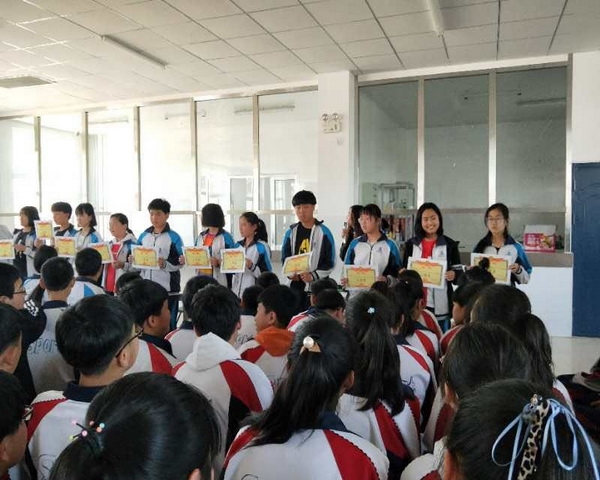 活动一开始,李爱军校长对这次考试中成绩突出的同学进行了表彰,分别颁发了成绩优异奖、进步奖。对本次考试同学们展现的良好学习氛围及诚信考风表示赞扬。