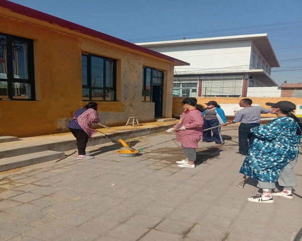 2019年5月11日,在这个鲜花盛开生机盎然的季节里,吴各庄完全小学全体教师在校长闫绍荣的带领下,利用周末休息的时间,顶着烈日对学校所有教学用房的墙体进行了粉刷,既节约了有限的教育资金,又美化了学校的校园环境,使全校的学生在一个全新的教学环境中快乐学习。(信息员:冯守健)