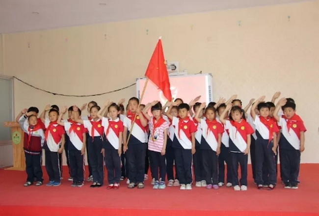 31日上午,在少先队小干部费昭阳、赵洛言的主持下,入队仪式开始了。飘扬的队旗从队员中间缓缓起来,激荡起全体少先队员的光荣感和使命感。刘台庄中心小学党支部书记王艳红、德育主任王玲以及六(1)中队、六(2)中队全体少先队员、辅导员参加了此项活动,并对一年级新入队的少先队员表示祝贺。入队仪式上,大队长李佳瑶宣读了新队员名单,并主持了建队仪式。大队辅导员陈娜老师带领新队员宣誓,句句铿锵誓言,表达出了新时代中国少年先锋队队员的理想与承诺。崭新的面貌,崭新的希望,中华民族更加美好的明天将会由他们来创造。六年级老队员郭禹涵在讲话中向新队员提出了更高的要求,希望他们严格要求自己,努力争做新时代的好少年;李心语代表全体新队员表示:要学习少先队章程,作合格的少先队员;德育主任王玲代表学校党支部、学校领导祝贺63名新队员加入中国少年先锋队这个光荣的组织,希望他们努力学习、热爱科学、强健体魄、心装梦想,为实现伟大的中国梦而努力奋斗!在庄严的呼吁声中,入队仪式结束,退队旗,各中队合影留念。