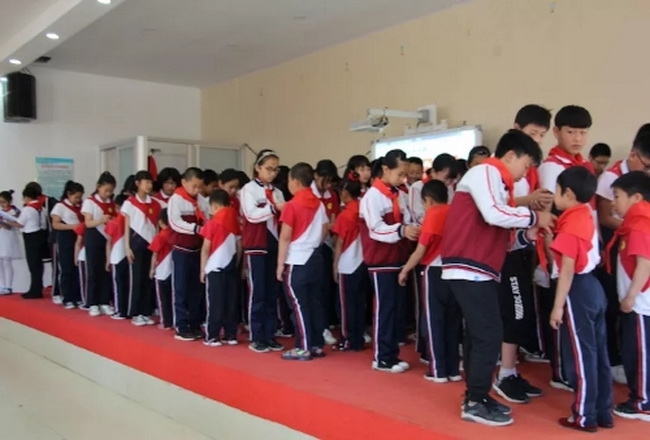 送走五月的芬芳,迎来六月的阳光。在这介阳光灿烂的日子里,伴随着中华人民共和国70年的历程,中国少年先锋队度过了70个岁月。在 "六一" 国际儿童节到来之际,刘台小学于5月31日隆重举行 "红领巾相约中国梦 争做新时代好队员" 一年级新队员入队仪式暨庆 "六一" 活动。