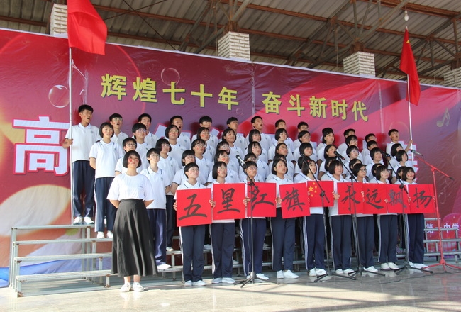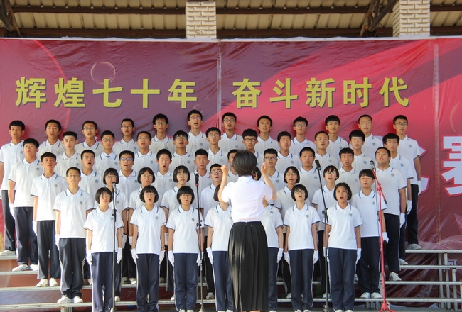 上午7点歌咏比赛准时拉开帷幕,高一年级17个班级按抽签顺序依次登台。各班选手着装整齐,精神饱满,朝气蓬勃。参赛队纪律严明,进出场整齐有序。《歌唱祖国》《保卫黄河》《国家》《强国一代有我在》《中华好儿孙》《强军战歌》《没有共产党就没有新中国》《我们走在大路上》等歌曲相继登场,唱出了对实现民族伟大复兴的坚定信念和对中国共产党的拥护与爱戴,表达了不忘初心、永远跟党走的坚定信念……一首首歌曲,声音嘹亮,气势磅礴。同学们的精彩表现,赢得了在座领导和师生的阵阵掌声。