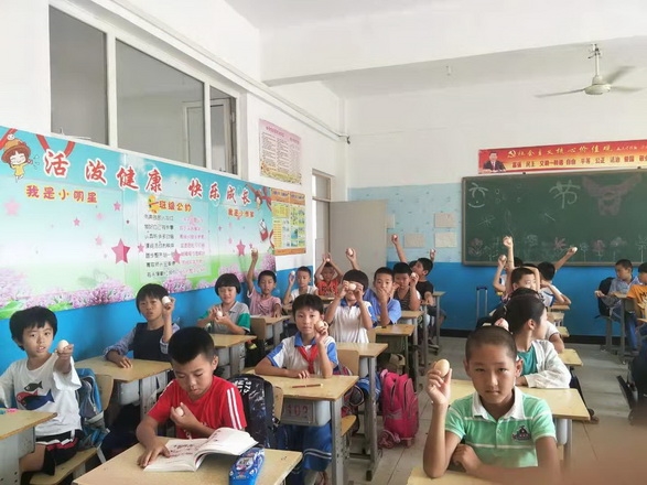 2019年9月2日课间操时间,大滩完全小学全体学生准时吃上了鸡蛋,喝上了牛奶。按照昌黎县教育和体育局要求,从本学期开始,农村小学生实施营养改善计划,大滩完全小学认真落实上级要求,提前做好各项准备工作。9月2日教师到校后,按照责任分工,相关责任人煮鸡蛋、分牛奶,召开班主任会议;第二节下课后,班主任按顺序领取,之后在教室里进行分发;吃完后,进行垃圾回收。经过最终统计,大滩完全小学在9月2日到校281人,饮用牛奶281人,吃鸡蛋279人(有1人过敏者,1人出疹子不适),校长陪餐,总共喝牛奶282盒,吃鸡蛋280枚。