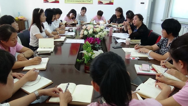 调研中王蕊老师首先对县幼儿园主题教育活动的推进情况做了相关汇报,将教材及幼儿园主题 "爱为起点,感恩同行" 的意义做了深入解读,讲出了开展主题教育活动的一些推进做法,如:平行班设计月主题活动;根据主题创设班级区域活动;根据主题设计每月主题墙;利用节日开展主题活动等。其中重点提到本学期新加入的劳动实践活动,以2015年习近平总书记提出的 "以劳动托起中国梦" 和《幼儿园教育指导纲要》中指出 "要培养幼儿对劳动的热爱和劳动成果的尊重" 为指导,有目地、有计划的开展了一系列活动,包括六个步骤:劳动教育渗透、埋下启萌种子;深入了解劳动,增强劳动意识;游戏劳动实践,培养劳动兴趣;劳动实践活动-- "昌幼植物园" ;大社会小缩影-- "碣石小城" ;家园合作体验劳动幸福感,循序渐进的对幼儿进行劳动养成教育,得到了领导和教研员的赞赏和认可。听完汇报李素英主任一行观看了幼儿早操及户外游戏活动,对幼儿的健康发展给予了特别的关注,随后进班观看了幼儿半日活动及进餐情况。在最后的座谈环节中,李素英主任说: "主题教育活动一定要关注课程多领域的整合,关注细节,关注以幼儿为中心,幼儿一日生活活动中一定要注重习惯养成教育,要做好幼小衔接工作,注重入学8种能力的培养" ,郑智华主任也就今天的调研活动有感而发,她说: "幼儿教师特别重要,是为孩子以后成长打基础的重要启萌人,要求教师对《幼儿园教育指导纲要》和《3-6岁儿童学习与发展指南》一定要深入解读,并且要把幼儿园去小学化倾向做为研究的重点等等" 。通过交流座谈,老师们对主题教育活动的开展形式以及整合课程内涵的把握有了更深入的认识和理解,对于教师自身价值的重要性有了更坚定的信念。