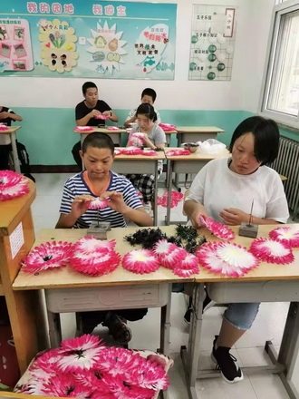 赵民胜校长联系了爱心企业,为手工制作的开展提供了原材料和销路。为了有序地指导学生,郭秀清主任将全体教师进行了分组,每天轮流指导学生。在刘冉老师的带领下,师生们的手工制作活动开展的如火如荼。活动设计由易至难、循序渐进,以能促进残障学生康复和职业教育为目的,在实践中深受学生的欢迎。尤其是培智学生的兴趣一下被调动了起来。通过撕、捏、插、按等动作,学生们制作了一朵朵美丽的莲花,栩栩如生。经过反复的练习,动手能力强的学生也学会了独立组装小烛台。安上电池、打开开关,小烛台发出闪闪的红光,照亮了教室,更照进残障学生的心灵。